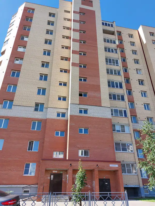 Окна квартиры выходят прямо на улицу, обеспечивая хорошее естественное освещение в течение дня. Для молодых семей с детьми во дворе обустроена детская площадка, а рядом расположены детский сад «Сказочный мир детей» и школа, что значительно упрощает организацию быта семьи с ребёнком.